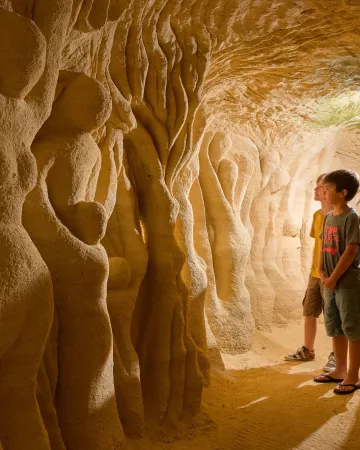 Kinder sind in dieser mysteriösen Höhle herzlich willkommen. Mit einem Broschürenheft ausgestattet und in Begleitung eines Erwachsenen, können sie in der Höhle der Skulpturen auf Schatzsuche gehen. Ist im Sommer die Sonne untergegangen, stehen unterirdische Führungen auf dem Programm, die im Kerzenschein und mit Geschichtenerzählen als besonderes Erlebnis außerhalb von Raum und Zeit im Gedächtnis bleiben werden!
