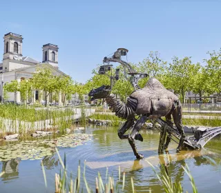 Was für eine geniale Idee des Szenografen und Regisseurs François Delarozière aus Nantes, der in den Wasserbecken des place Napoléon eine echte mechanische Menagerie installiert hat. Nilpferd, Krokodil, Eule, Nilbarsch, Kamel oder Flamingos sind jeweils an ein Steuerpult angeschlossen, das es den Zuschauern erlaubt, jeden Körperteil des Tiers zu bewegen, was (fast) so echt wie in Natur aussieht. Die Kinder sind vollauf begeistert!