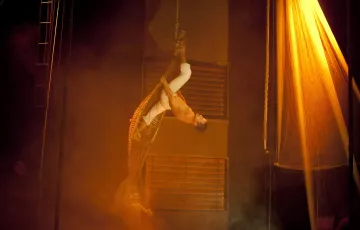 Eine spektakuläre Darbietung von Luftakrobatik, die von den Kompanien Armance Brown, Arts des Airs und Bruno Krief ausgeführt wird. Die vier Figuren stellen Traumfragmente dar, wobei sie chinesische Maste, Tragegurte, Stangen und sogar Moskitonetze verwenden.