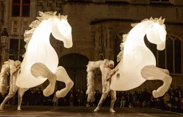 Dieses Schauspiel der Kompanie Les Quidam tauchte das Publikum in eine träumerische Welt, in der monumentale Hengste sich einen fantastischen Ritt lieferten.
