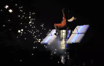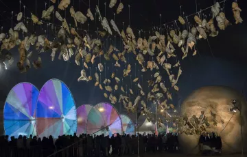 Die eindrucksvollen farbigen Räder der Compagnie Off, die 7 bis 11 Meter hoch sind und von seltsamen Kreaturen bewegt werden, ziehen mit einer diabolischen Choreografie und von elektronischer Musik begleitet durch die Innenstadt.