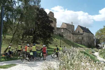 La Régalante ist eine Straße, die sich durch kleine Dörfer und große Geschichten schlängelt. Vier Tage lang können Sie sich von der mittelalterlichen Burg von Châteaubriant bis zu den belebten Kais von Nantes treiben lassen. Dazwischen liegt eine Kette von Entdeckungen, die sich im ruhigen Rhythmus Ihrer Räder entfaltet: eine fast tausendjährige Abtei, ein See, der mit dem Licht spielt, alte Schmieden, in denen noch die Hämmer der Vergangenheit widerhallen. Auf diesem Buschweg findet die Zeit ihr richtiges Maß wieder, das Maß der Begegnungen und der Landschaften, die sich ohne Eile enthüllen.