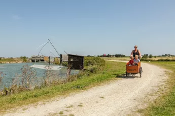 Die Route führt Sie zurück ins Innere des Sumpfgebiets. Um Ihr Wissen über dieses einzigartige Ökosystem zu vertiefen, lohnt sich ein Halt in Le Daviaud. Dieses Freiluft-Ökomuseum lässt Sie in die Geschichte des Sumpfes eintauchen: traditionelle Bourrine mit Strohdächern, Salorge, in der das Salz gelagert wurde, Tiere alter Rassen. Einige Pedaltritte führen Sie zu den Fischereien von Le Porteau, bevor Sie in Fromentine Halt machen, wo Sie in einer Austernhütte eine Kostprobe nehmen können.