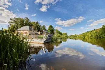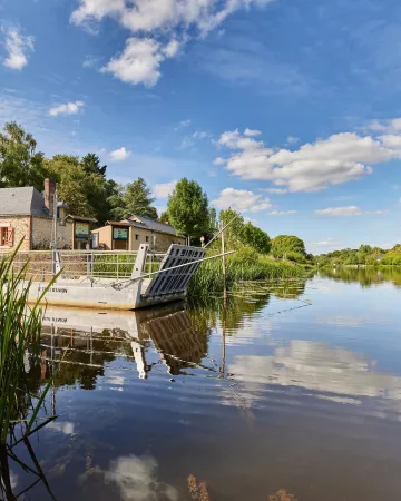 Wecken Sie zum Gesang der Vögel, frühstücken Sie auf der Brücke mit Blick auf die erwachende Mayenne. Entlang des Ufers bewundern Sie die Domaine du Moulin und ihre Mühle Bouin, eines der letzten drehenden Räder im Tal. Diese befestigte Mühle mit ihrem einzigartigen quadratischen Turm erzählt 800 Jahre Müllergeschichte. Etwas weiter entfernt lädt La Jaille-Yvon mit seinen Outdoor-Aktivitäten zu einem sportlichen Zwischenstopp ein. In Daon können Sie Ihr Boot gegen ein Kajak eintauschen oder sich auf dem Treidelpfad auf ein Fahrrad schwingen.